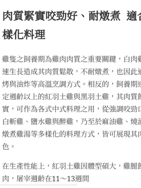 選用台灣優質放山紅羽土雞,肉質鮮美且富有嚼勁。
