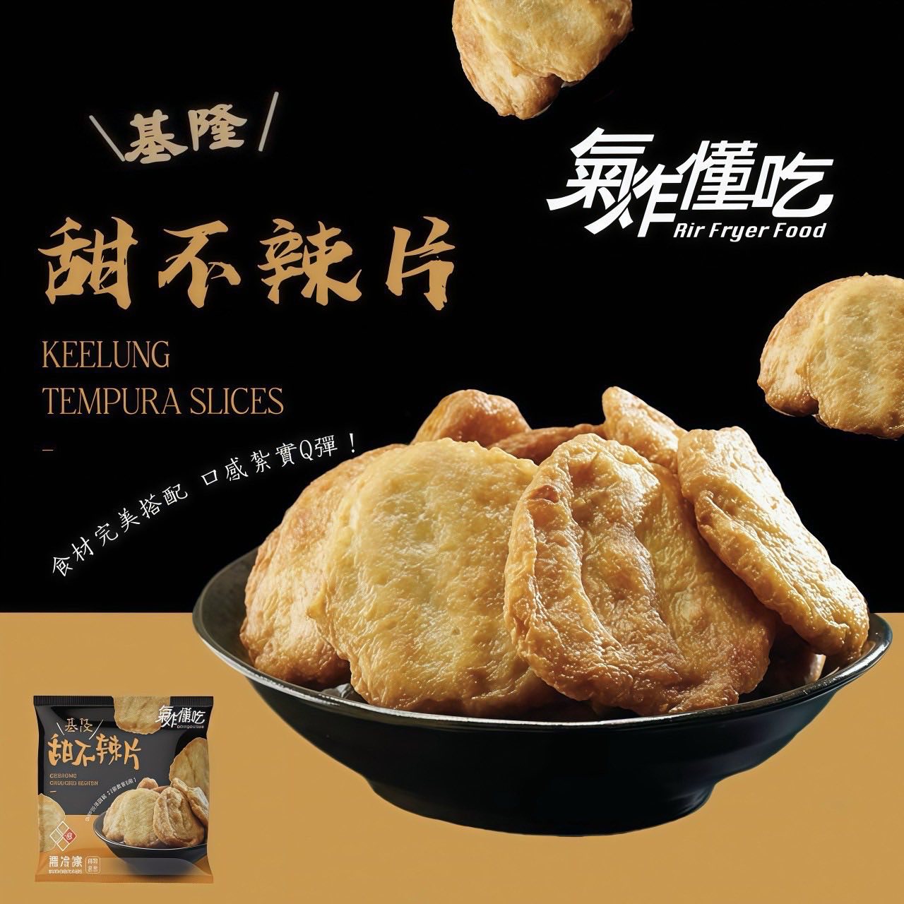 甜不辣片:圓片狀、外酥內嫩,氣炸 8 分鐘香味四溢