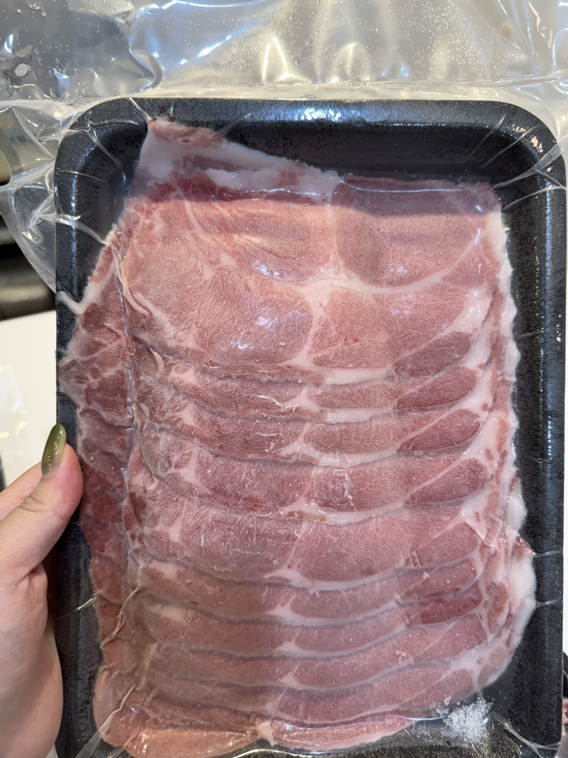 平鋪冷凍包裝,取片方便、不沾黏,退冰即煎、即涮都OK。